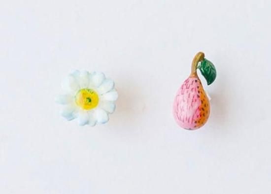 【ナタリー・レテ】ピアス ペアー×マーガレット 西洋梨とマーガレットの耳飾り |