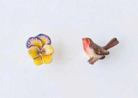 【ナタリー・レテ】ピアス バード×パンジー コマドリとパンジーの耳飾り |