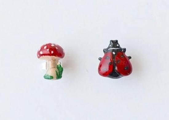 【ナタリー・レテ】ピアス レディーバグ×マッシュルーム てんとう虫とキノコの耳飾り |