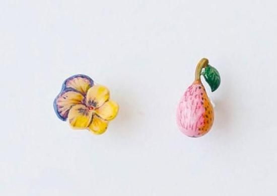 【ナタリー・レテ】ピアス ペアー×パンジー 西洋梨とパンジーの耳飾り |