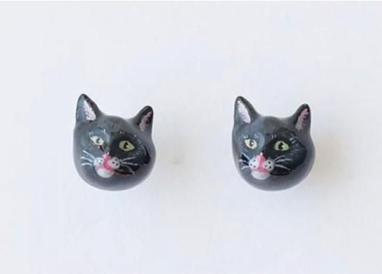 【ナタリー・レテ】ピアス ブラック・キャット 黒猫・ミッツィのフェイス耳飾り |